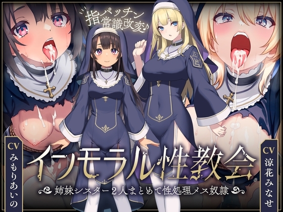 ![【シスターなら市民の性処理は普通⁉︎】 インモラル性教会〜"処女姉妹"2人まとめて”常識改変”〜【ずっと甘々淫乱プレイ115分♪】[CV:涼花みなせ/みもりあいの] 画像1](https://img.dlsite.jp/modpub/images2/work/doujin/RJ01247000/RJ01246527_img_smp1.jpg)