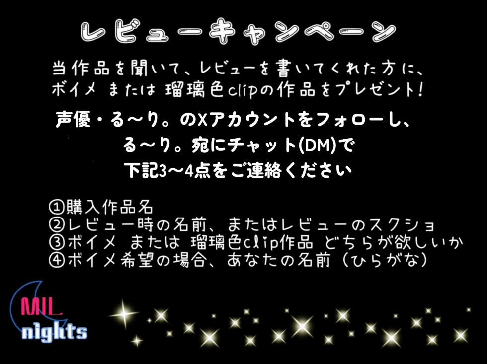 レビューいただいた方に、ボイメまたは瑠璃色Clipの作品をプレゼント!