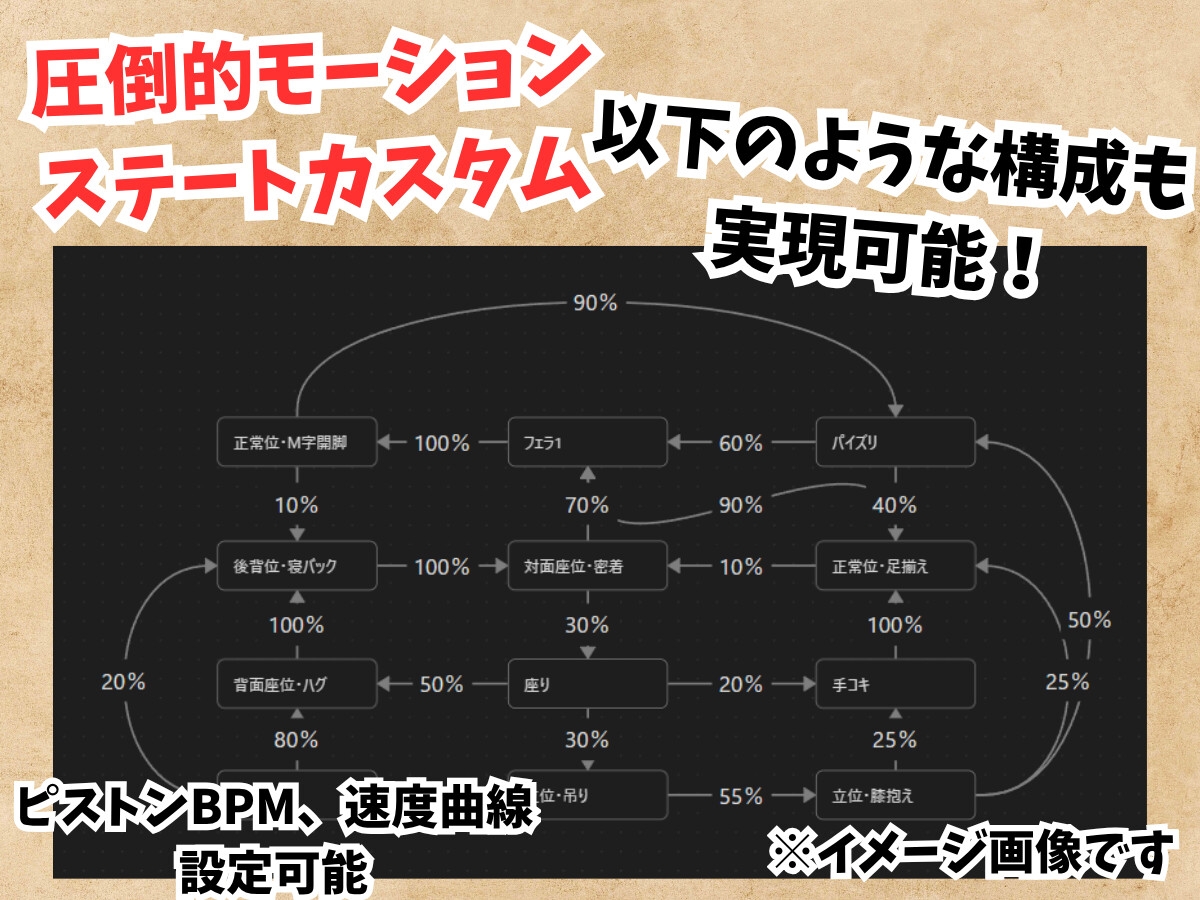 9種類の体位、計68種類のモーションから織りなす理想のオーケストレーションを自在に作ることができます。