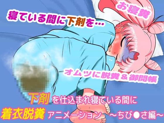 以前制作した、ちび●さCG集の一部、『寝ている間にう●ぎに下剤を仕込まれ、着衣脱糞(おむつ)』をアニメ化したリメイク的作品です。( https://www.dlsite.com/maniax/work/=/product_id/RJ307580.html )