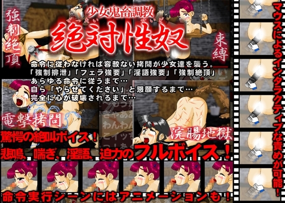 少女達に拒否権は与えられない…言わば主人の為だけに生きる家畜として調教されるのだ。命令に従わなければ容赦ない責めが少女達を襲う。「強○排泄」「フェラ強要」「淫語強要」「強○絶頂」あらゆる命令に従うまで…自ら「やらせてください」と懇願するまで…完全に心が破壊されるまで…